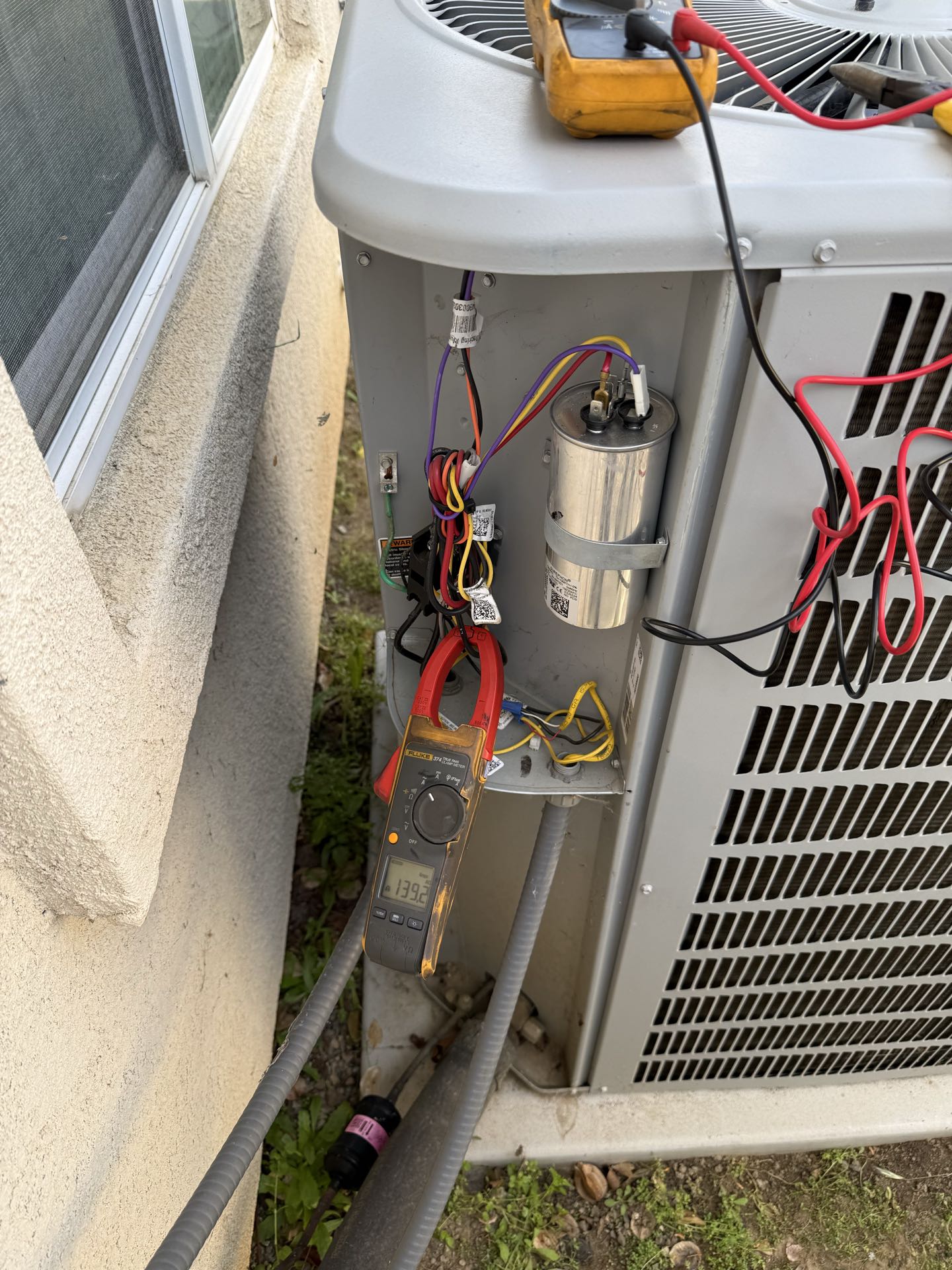 Air conditioning repair needed. Replaced capacitor and added hard start capacitor.